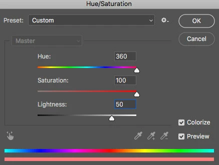 • Play with Hue as needed and increase Saturation as needed.
