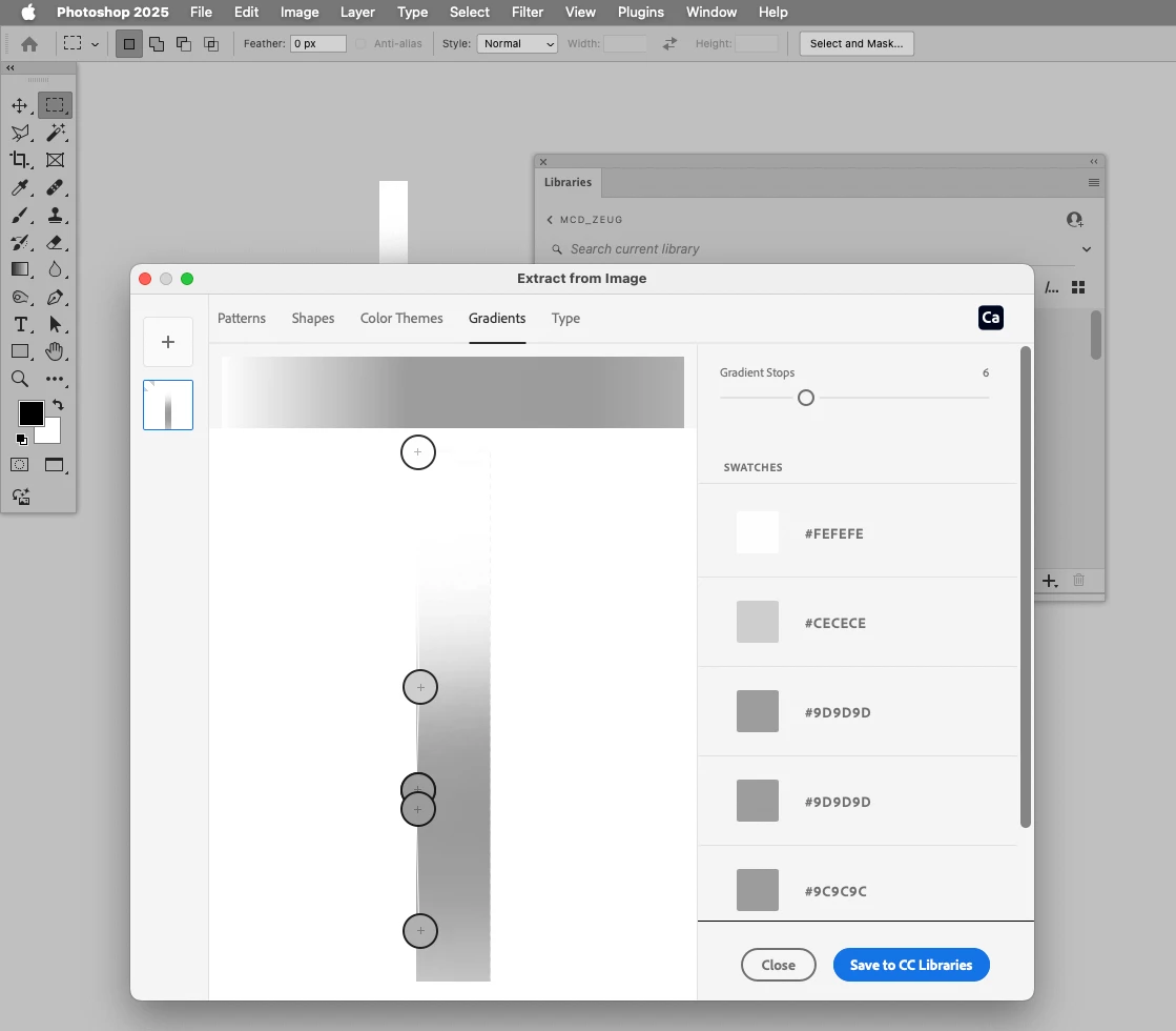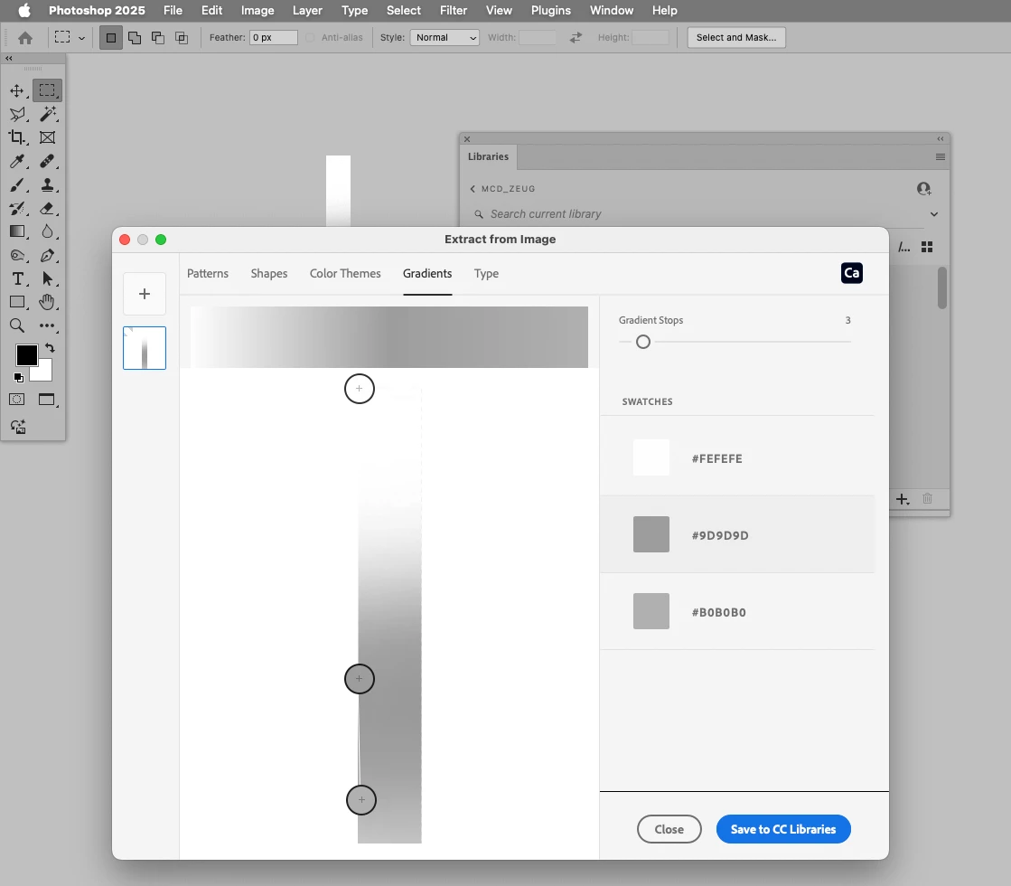 If you don’t want to manually recreate the Gradient you can split part of the image out and use Window > Libraries’ »Extract from Image«.