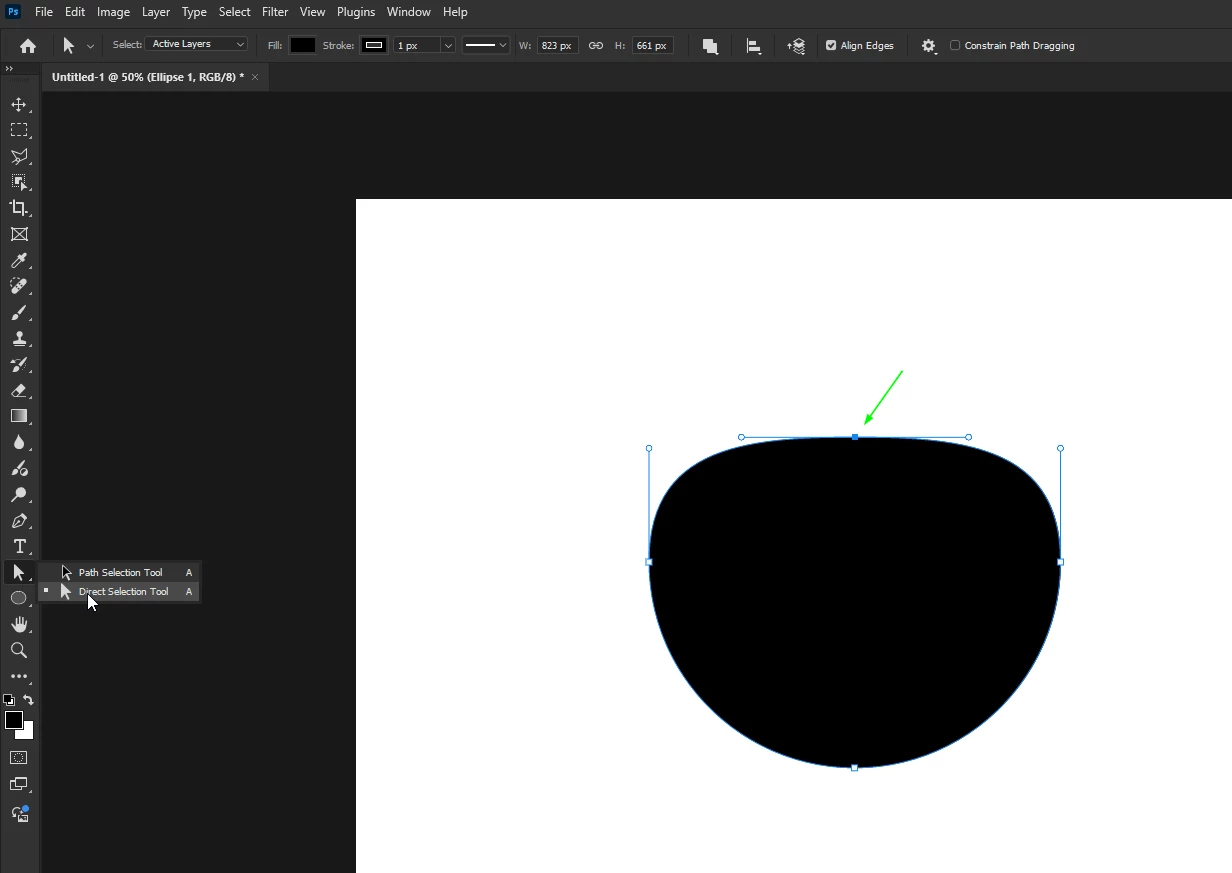 I have drawn an ellipse with ellipse marquee tool .I have marked two points on the left and right side on the top of ellipse.I have marked the third point on the top of the ellipse.Now i want to push the top of the ellipse downwards but i am not able to do so. Kindly tell as to how i can do this.