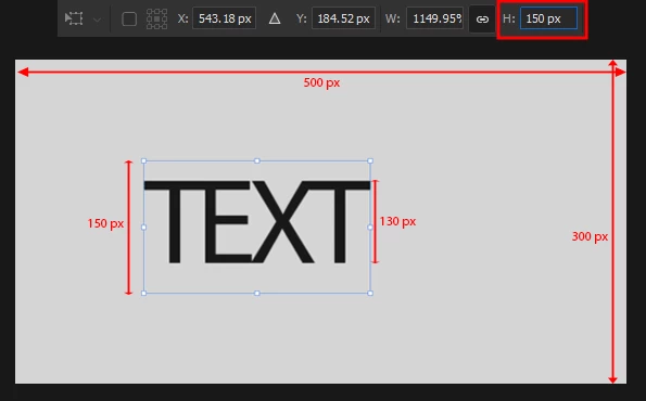 I have a 500 x 300 canvas. I want to make my text size (height) to be half of the my canvas size (150 px).By entering 150 px in the resize box (height), the bounding box size changes to 150 px not the real text height.