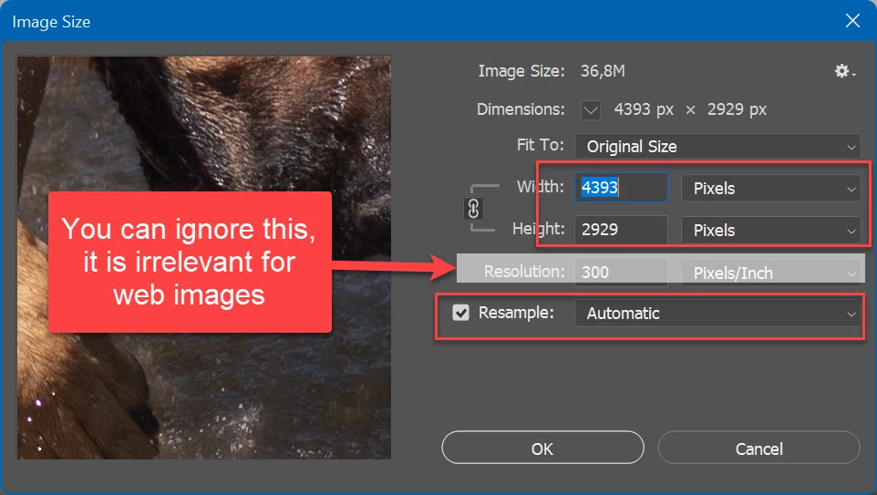 I edit photos for use on website and print. I usually resize my images to 1800 x 1800 for website, and the images have always come out sharp and clear. Randomly this afternoon I resized these images and they come out terrible quality. I have no idea why they are doing this, as I hadn't changed any settings. I have attempted unchecking resample and also changing resample through all the options. My settings are currently RGB and 8bit. Restarted my computer and I also just restarted Photoshop since I saw there was an update, but it didn't help. Is there something else I need to check? I haven't had this issue before today.
