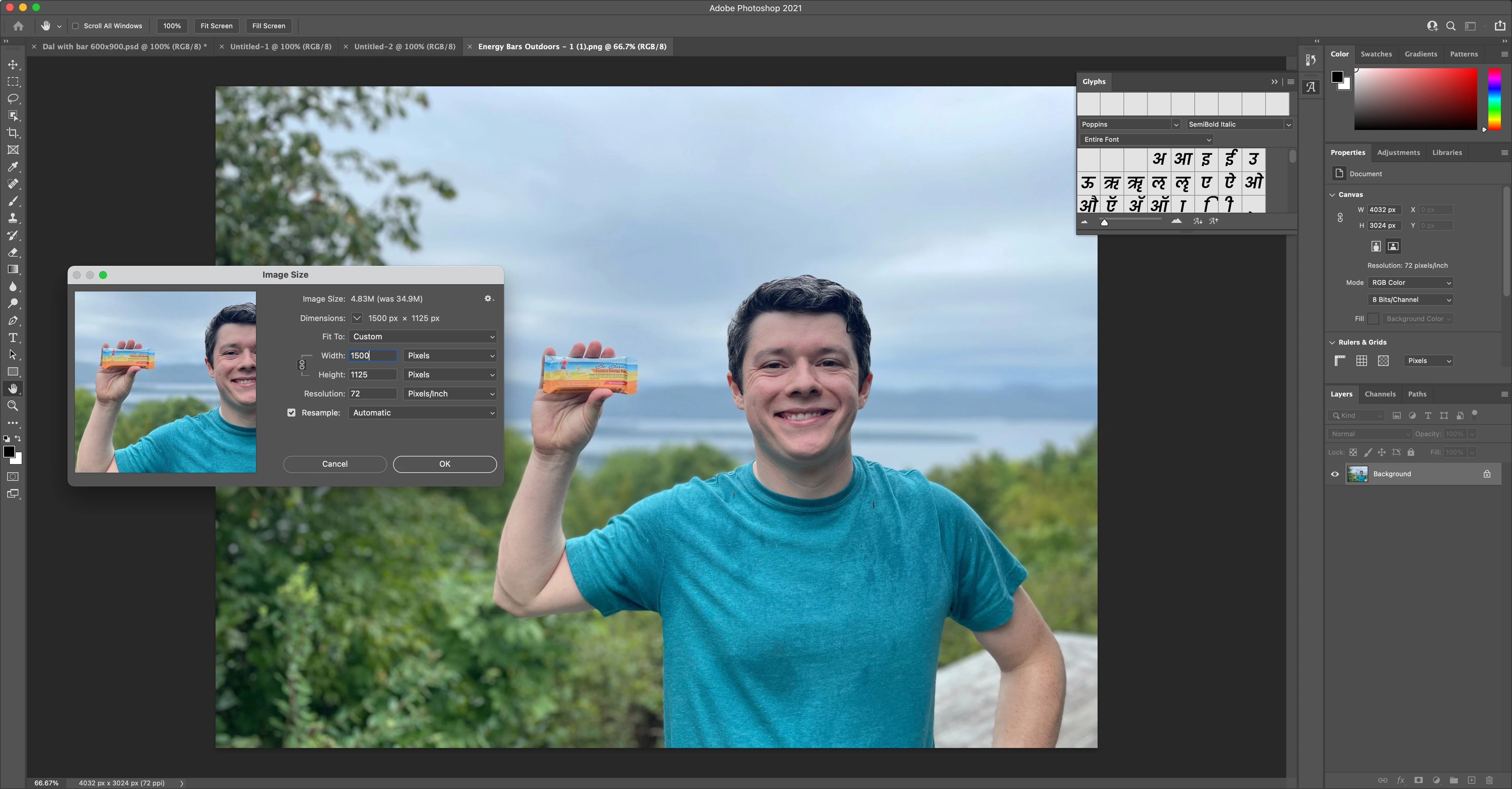 I'm bringing a png file into photoshop. I have to crop the photo to 600x900 to fit it in a space within optinmonster. When I select a 600x900 space the subject and product in the image will not fully fit into the 600x900. So I resized the image downward around 35%. So now when I go to select the 600x900 area, it is the same fit as before I down sized the image. I thought that because the image was smaller I would be able to select more of the image into a 600x900 area. I'm doing Image > Image Size , reducing the pixel width from 4000 to 1500, and leaving the resolution the same, and doing an automatic resample. Attached is a screen shot.