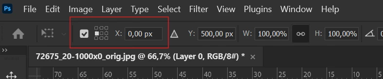 Depending on what you are looking for, there can be multiple solutions. If you want to move the crop rectangle and ensure it aligns with the edge, try placing a guide at the left edge, the crop rectangle should stick to it when moved freely. Another option mentioned is using selection. There is a setting in the options bar to define selection dimensions in advance before drawing or creating it. Later, use free transform selection to move it to the edge, using the guide as an anchor, or change the anchor to the left edge and then type 0 (zero) for the X position (screenshot below).