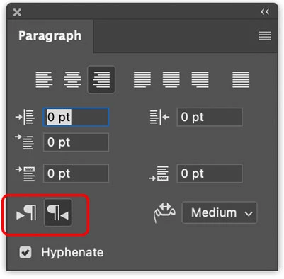 to be able to fix using the RTL button (the P icon with an arrow underneath) which no longer exists?