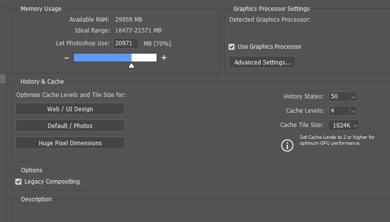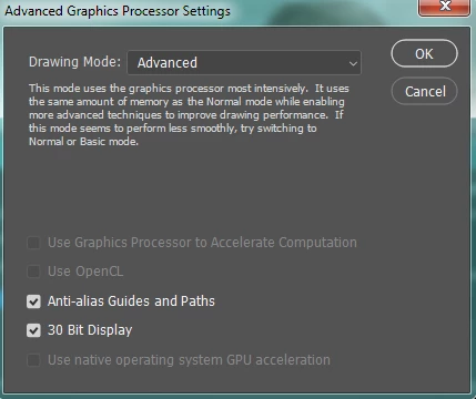 - Added a DWORD entry in the RegEdit Photoshop folder "AllowOldGPUS" and set it to 1