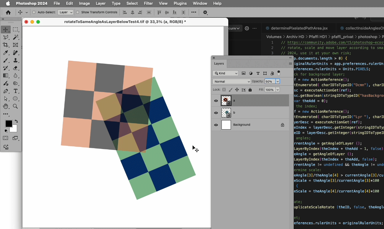 // rotate, scale and move layer according to smart object immediately below;
