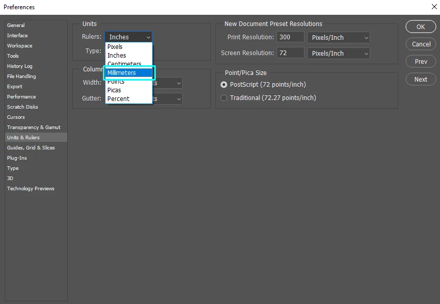 Is there a way to get my ruler tool in photoshop to measure in millimeters instead of pixels? Thanks!!