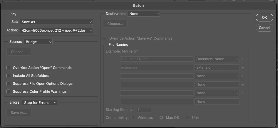 In an action I recorded a scriptstep to save a tif as a jpg in to a specific folder "jpg@300dpi". Every time PS is being restarted the file path in the "save as"-script step has changed to another (random?) folder. Sometimes even the filename changes. This results in files getting lost and the action needs to be recorded again and again... evry time I use PS. This happens as well with a folder located on a nas as well as with a locally stored folder on the computer ssd. I'm working on a new Mac Pro with the latest PS-version.