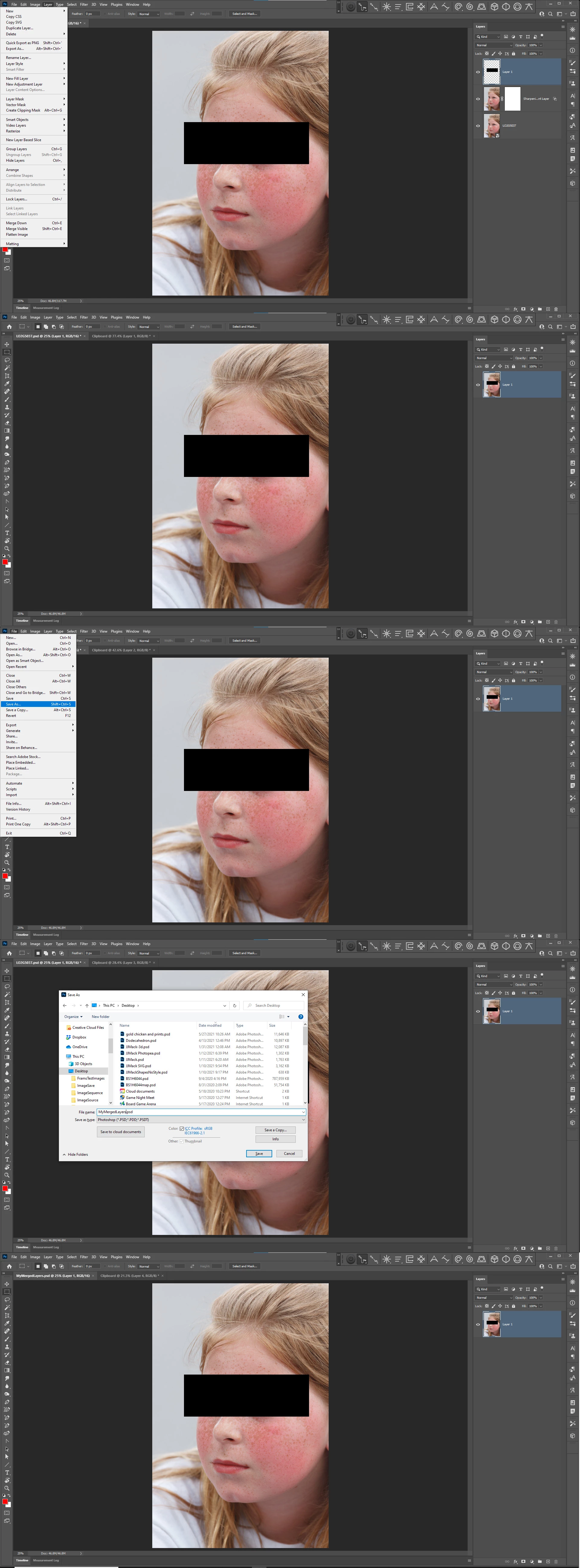 I have tried over and over again to set up an action to Merge Visible and Save As. The merge visible works. The save as works, except it does not change the name of the file on the tab. Therefore, the next save command does not show the latest filename. Using Photoshop version 22.4.1 on Windows 10 PC.