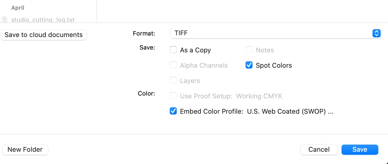Save as tiff option to include spot color gone in PS 22