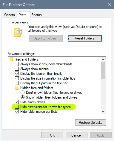 • set Windows to show file extensions.