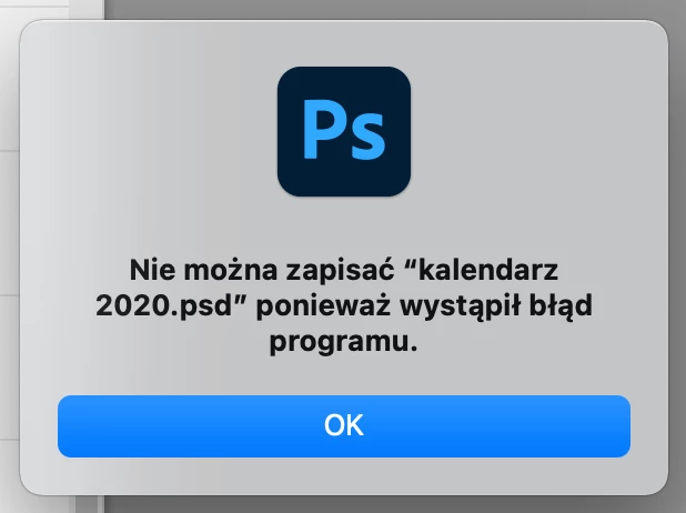 Cannot save "calendar 2020.psd" because a program error has occurred.
