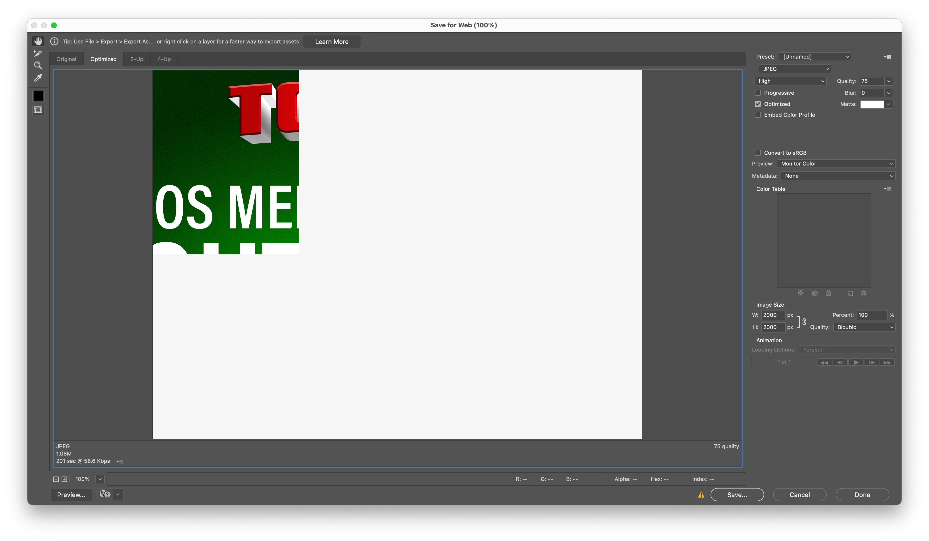 Photoshop 2024 is not displaying correctly any image when you try the Save for Web... option