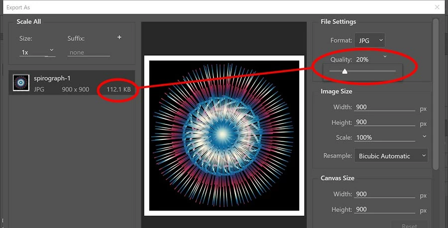 Save For Web (Legacy) actual export file size doesn't match size in export settings