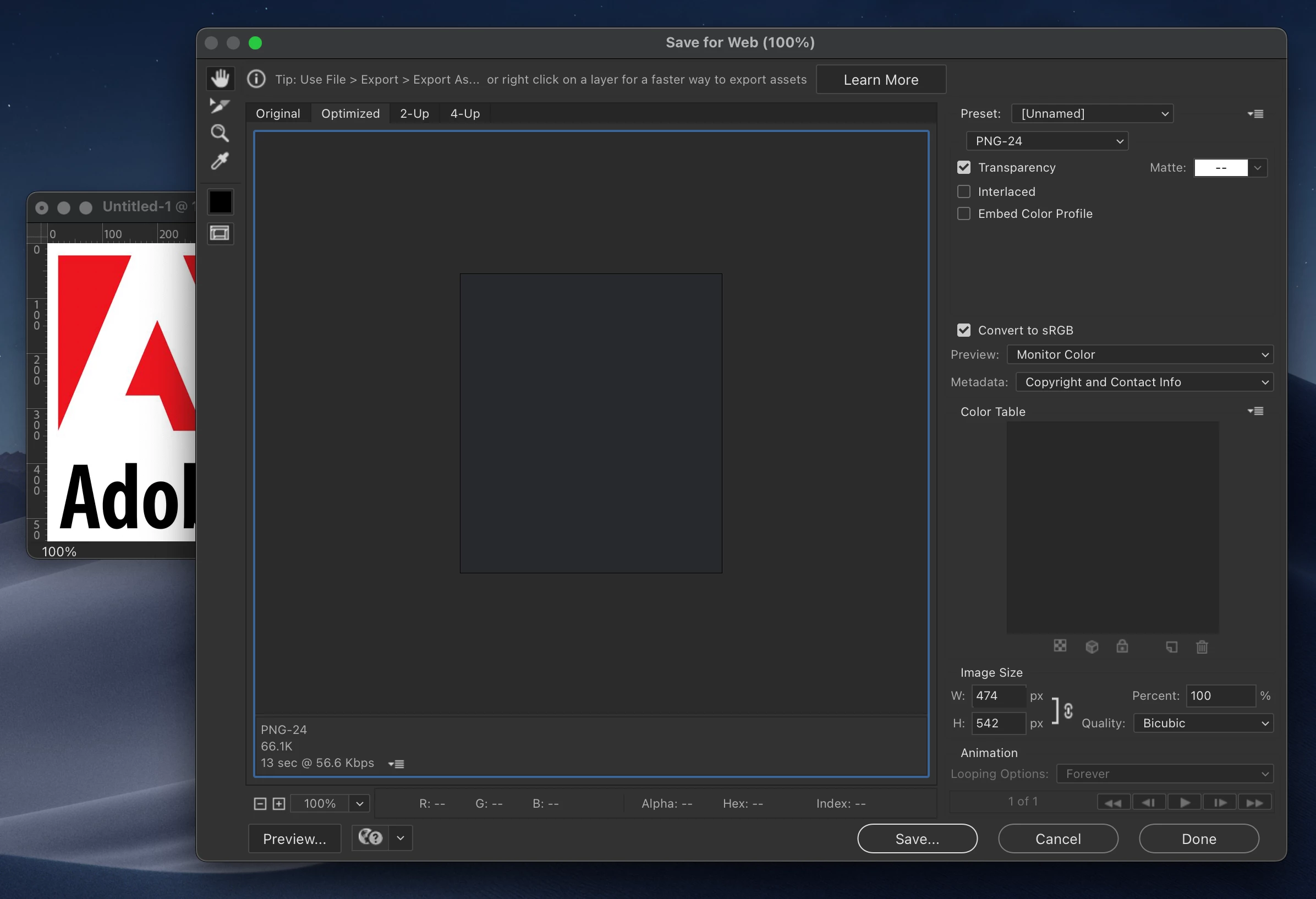 Save for Web (Legacy) preview is mostly empty in Photoshop 2024