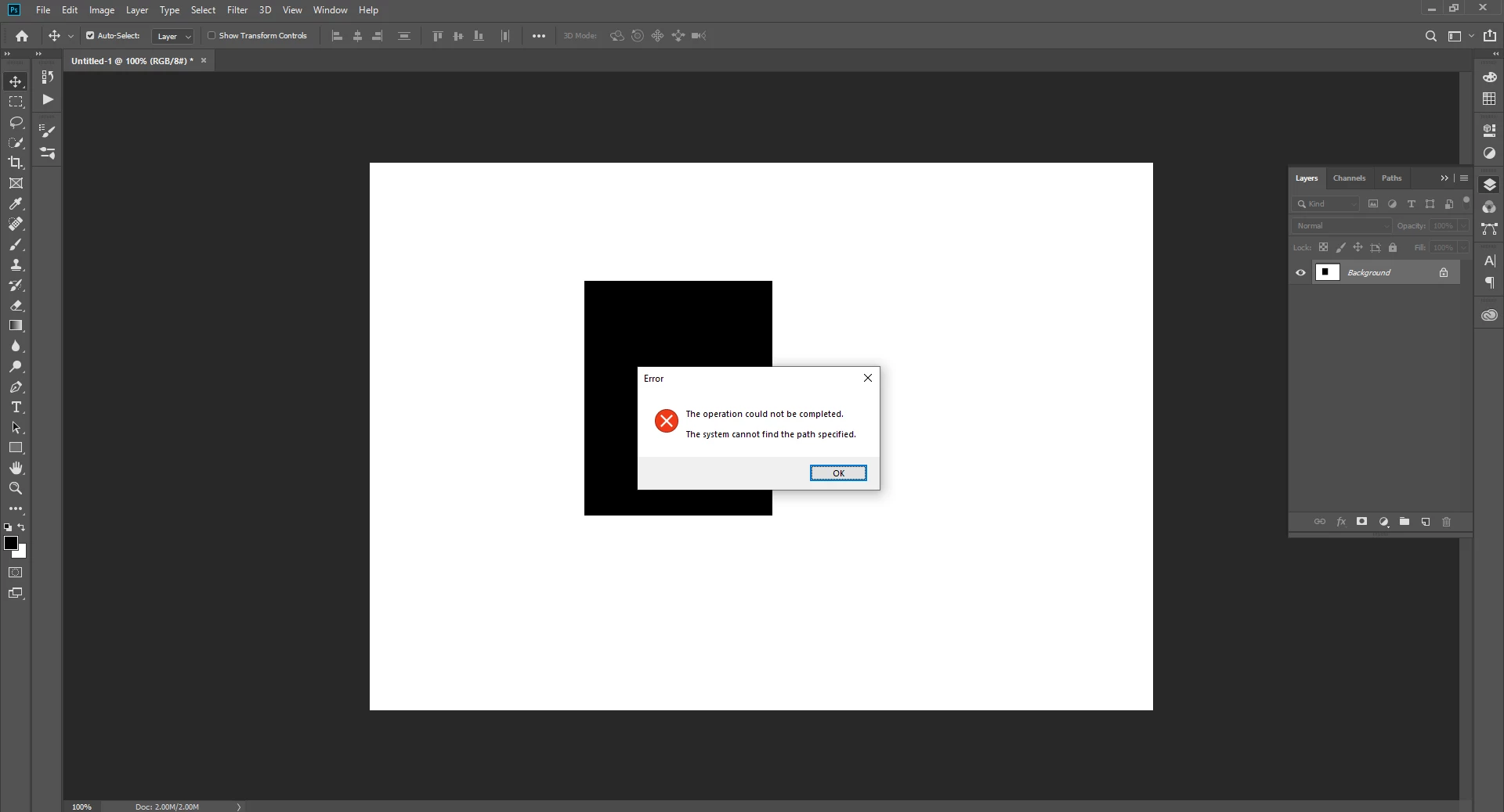 In recent photoshop update Save for web (legacy) command not working. It shows following error. "The system cannot ffind specified path.