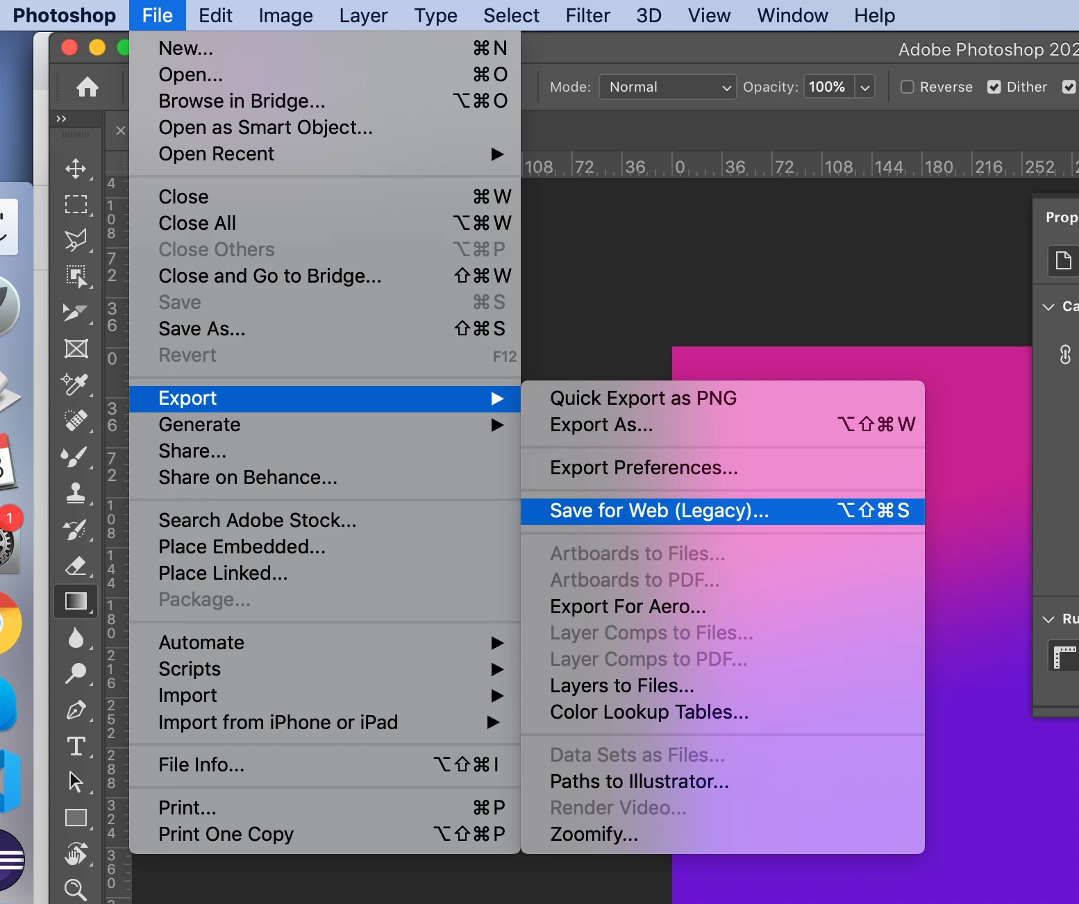 My save for web option is not working. Every time I try to save using the Save for Web ( Legacy) option I get an error message.
