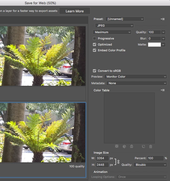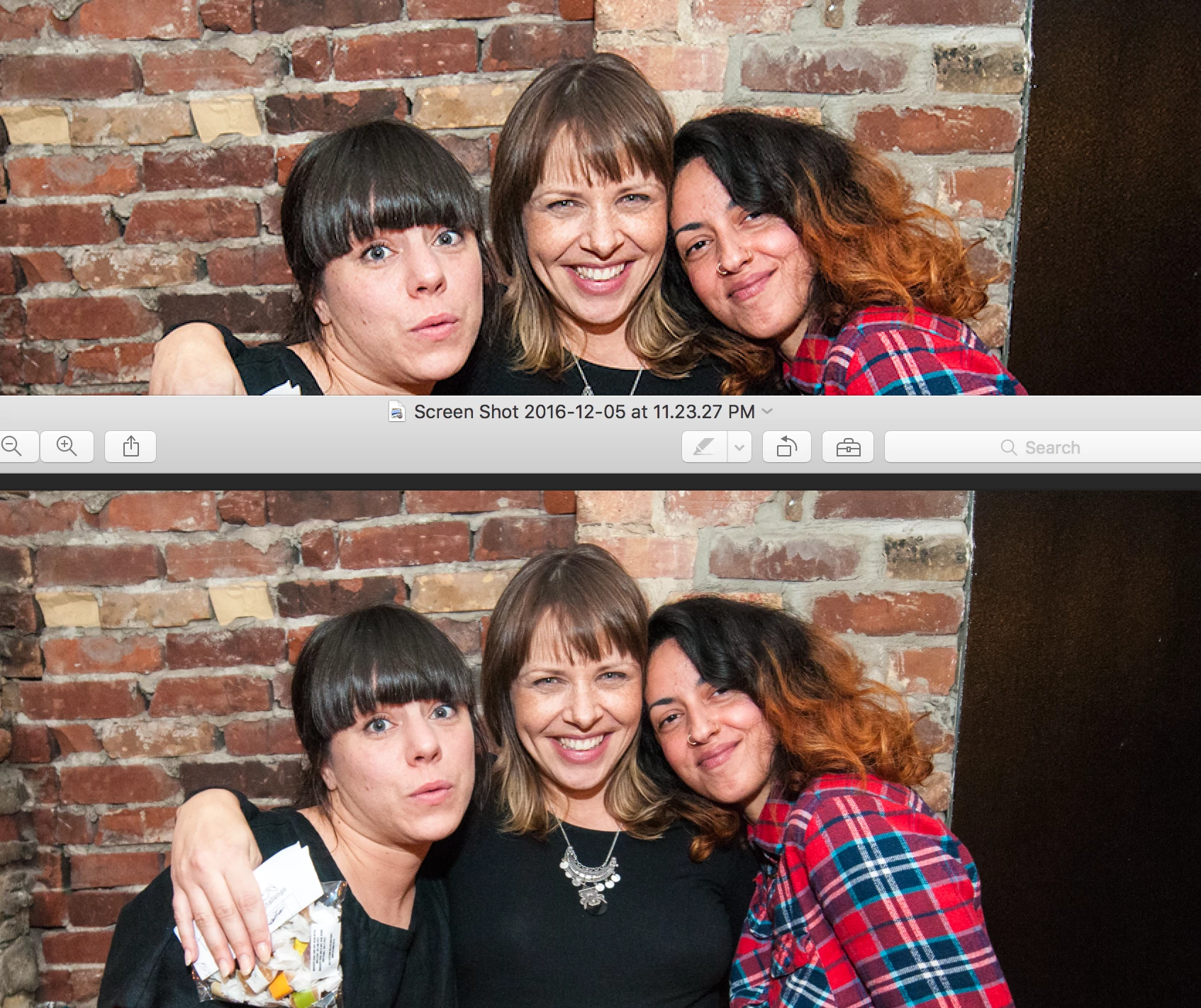 And here is a screenshot of them both open in Preview (top is after using Save for Web, bottom is screenshot of open Photoshop file):