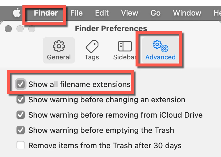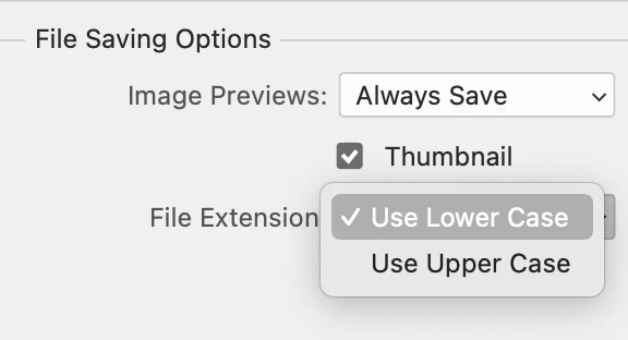 There are no extensions visible behind the file name when I save a file in Photoshop.