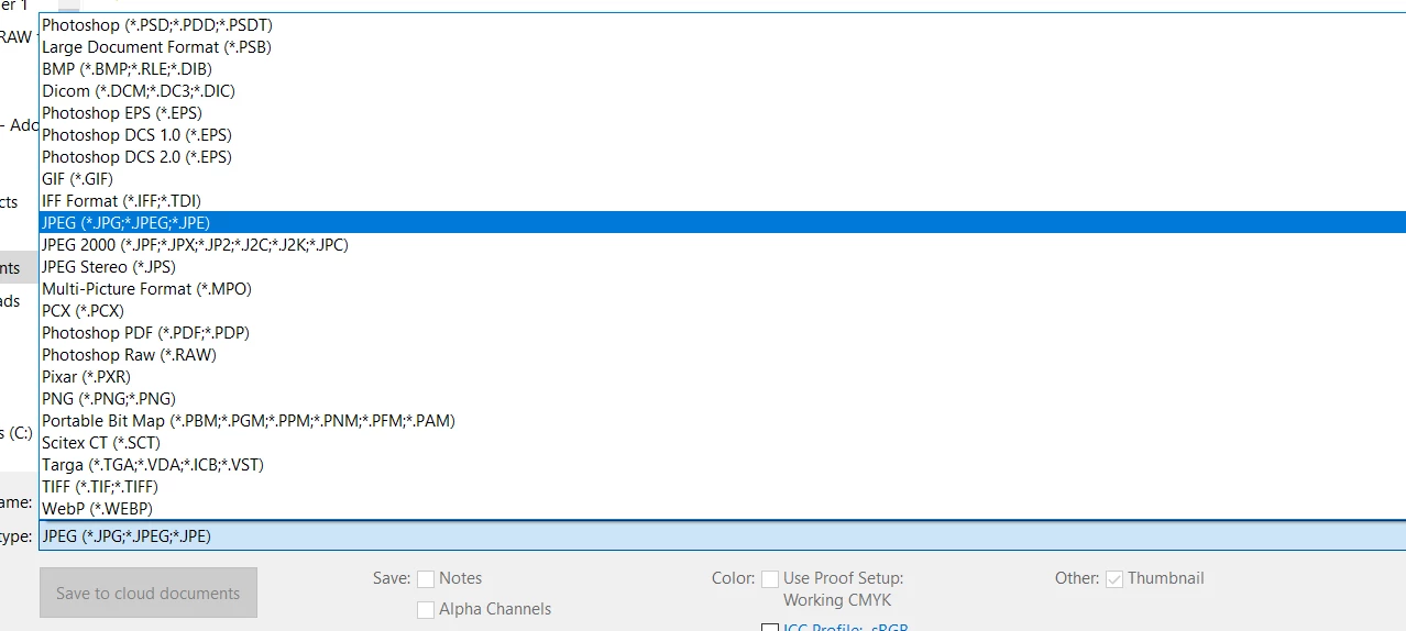 SO I updated on Wednesday to PS 2023 and now I only have 5 options for saving my projects in ALL MENUS. Is there somehting new to being able to save a JPG because I don't even see this function anymore in the Save A Copy or Save As funcitons. Is this user error (most likely) or what am I missing?