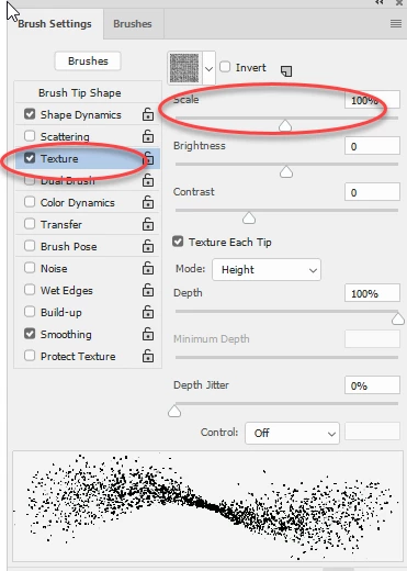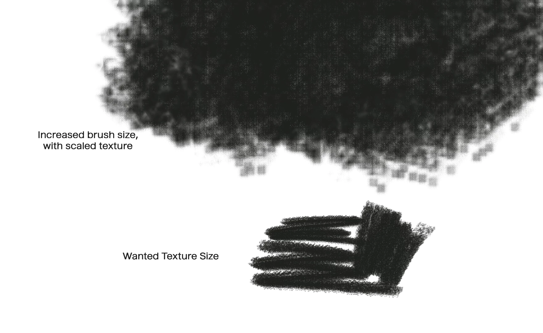 I now have to paint a larger area with the same brush. So I wanted to increase the brush size. Unfortunately the texture is scaling with it.