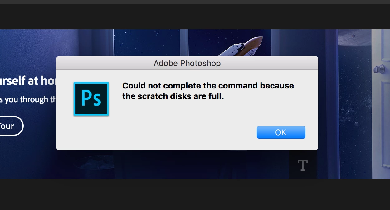 I can not solve this issue where it says "Can not complete the command because the scratch disks are full" as I attached below. I don't know why it says so because my laptop has a space and I have emptied many things. My photoshop cloud storage is also empty. I can not work on photoshop because of this problem. Can you pleae help me ??