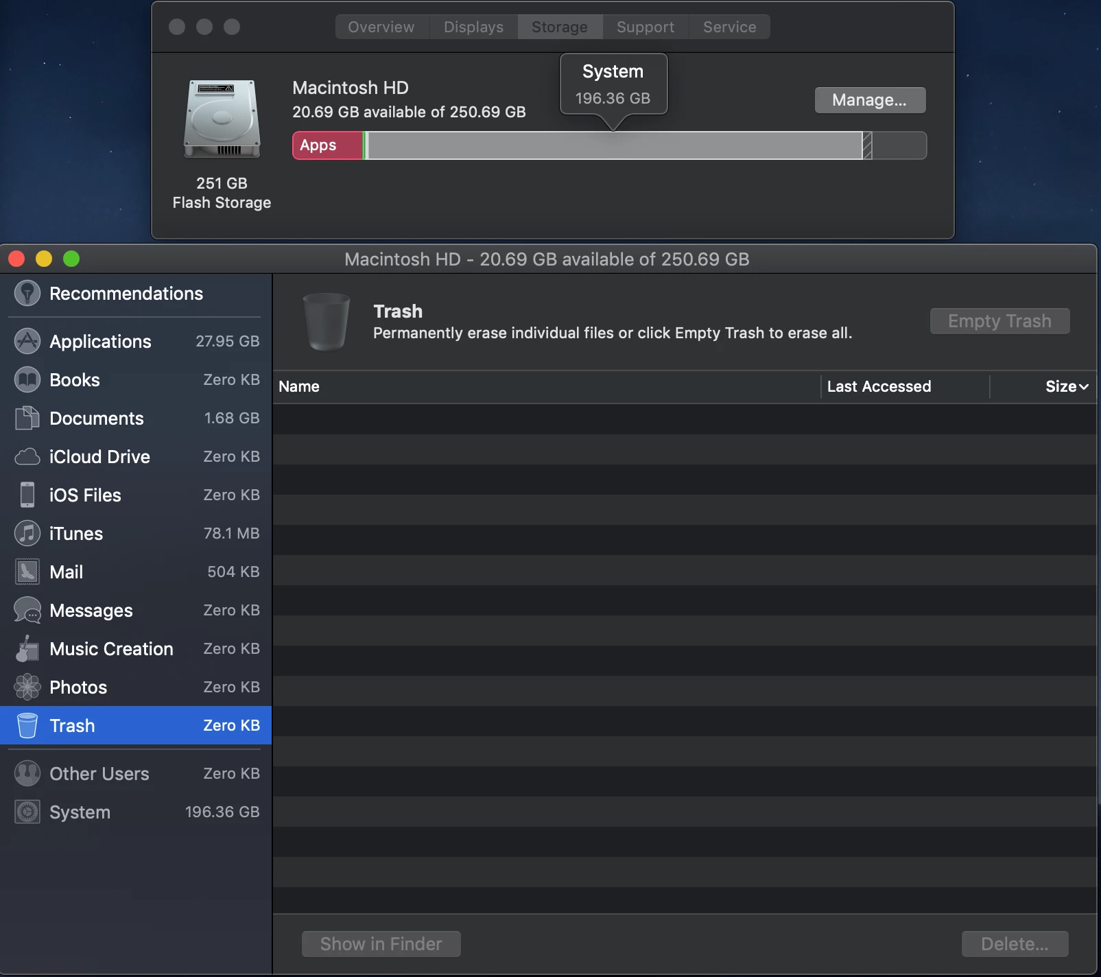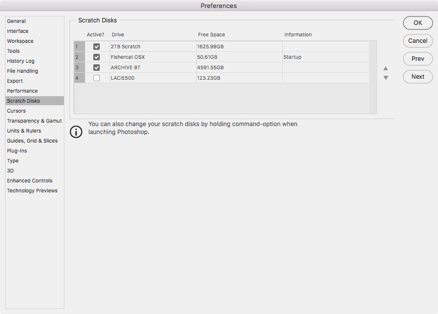 Frequently a message pops up saying Scratch Disk is full and after some research on the internet it appears I need at least 20gb free but I only have 14.94gb, and that is after a file purge. I am using Adobe CC 2019 and my Macbook Pro specs are below: