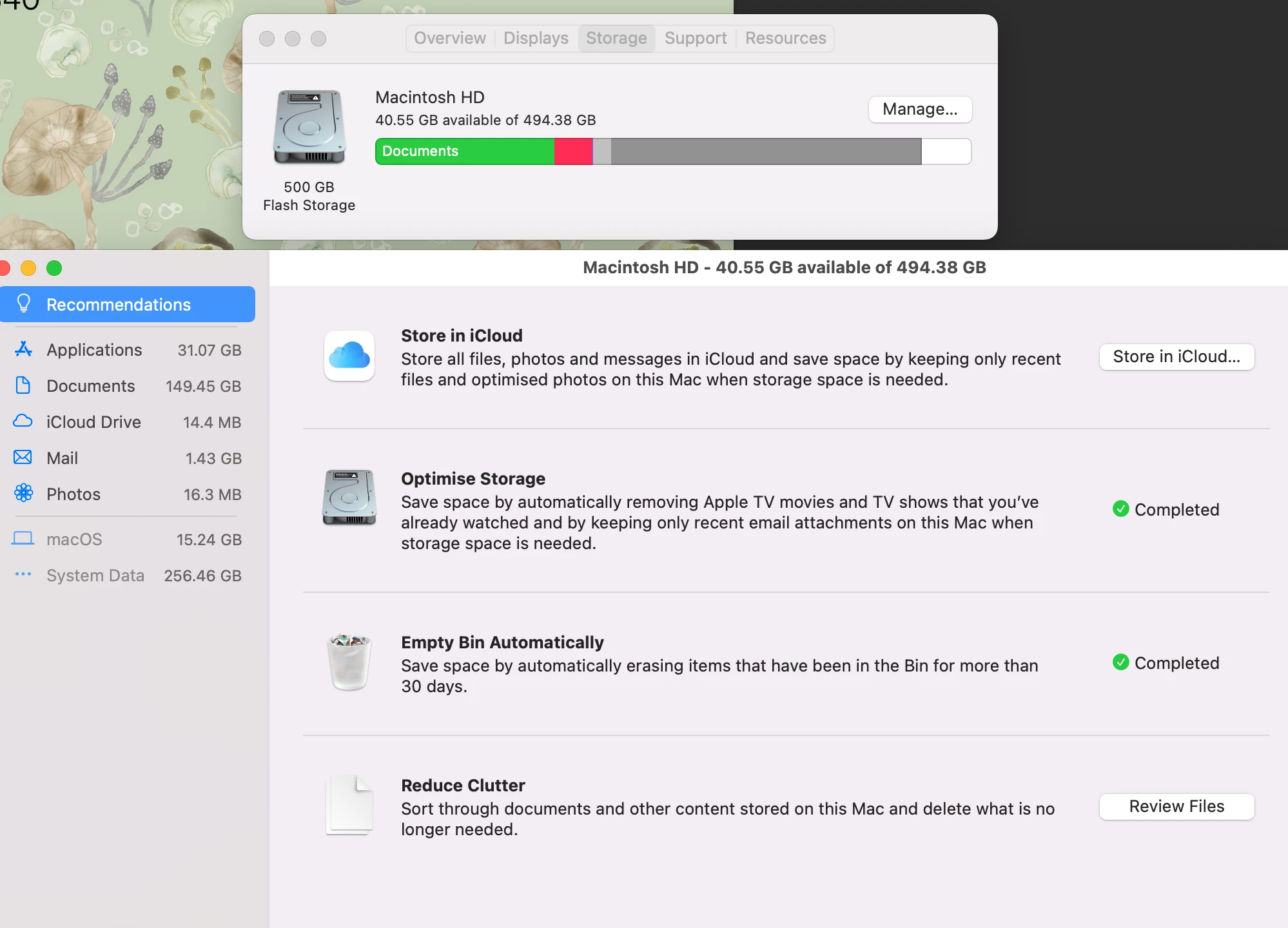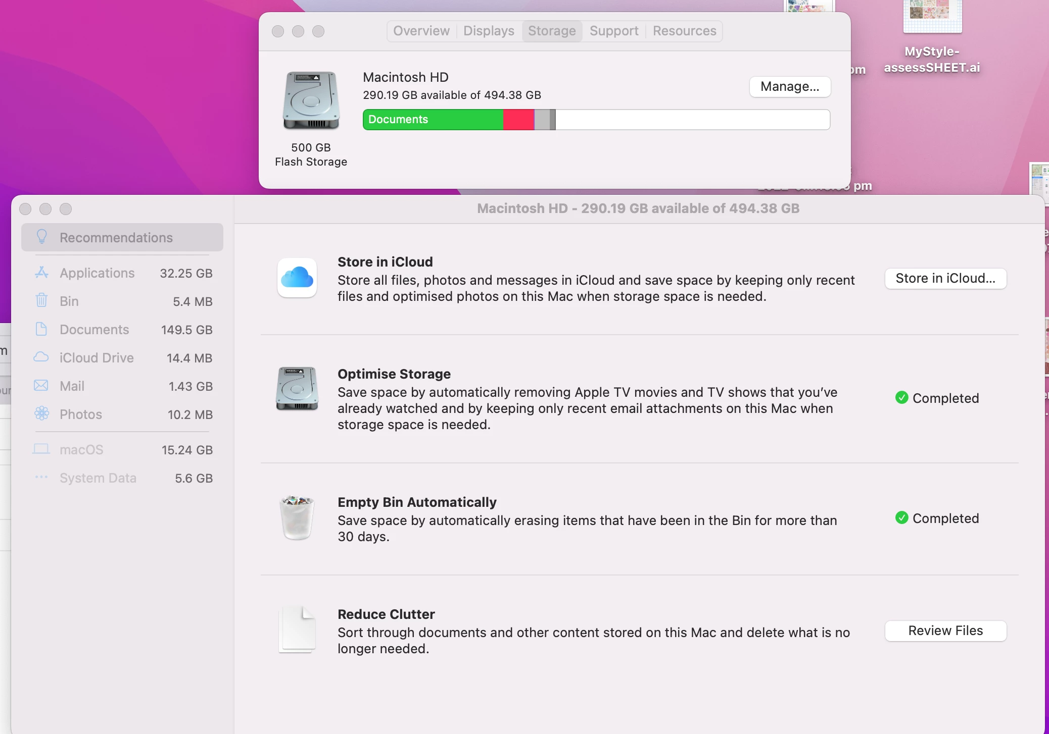 I have checked the cache in Photoshop. Deleted temp files and cleaned up my files. I currently have 257GB available space on hard-drive (see pic). System data is using around 256GB, when Photoshop is open. When Photoshop is closed it drops down to 5.6GB.