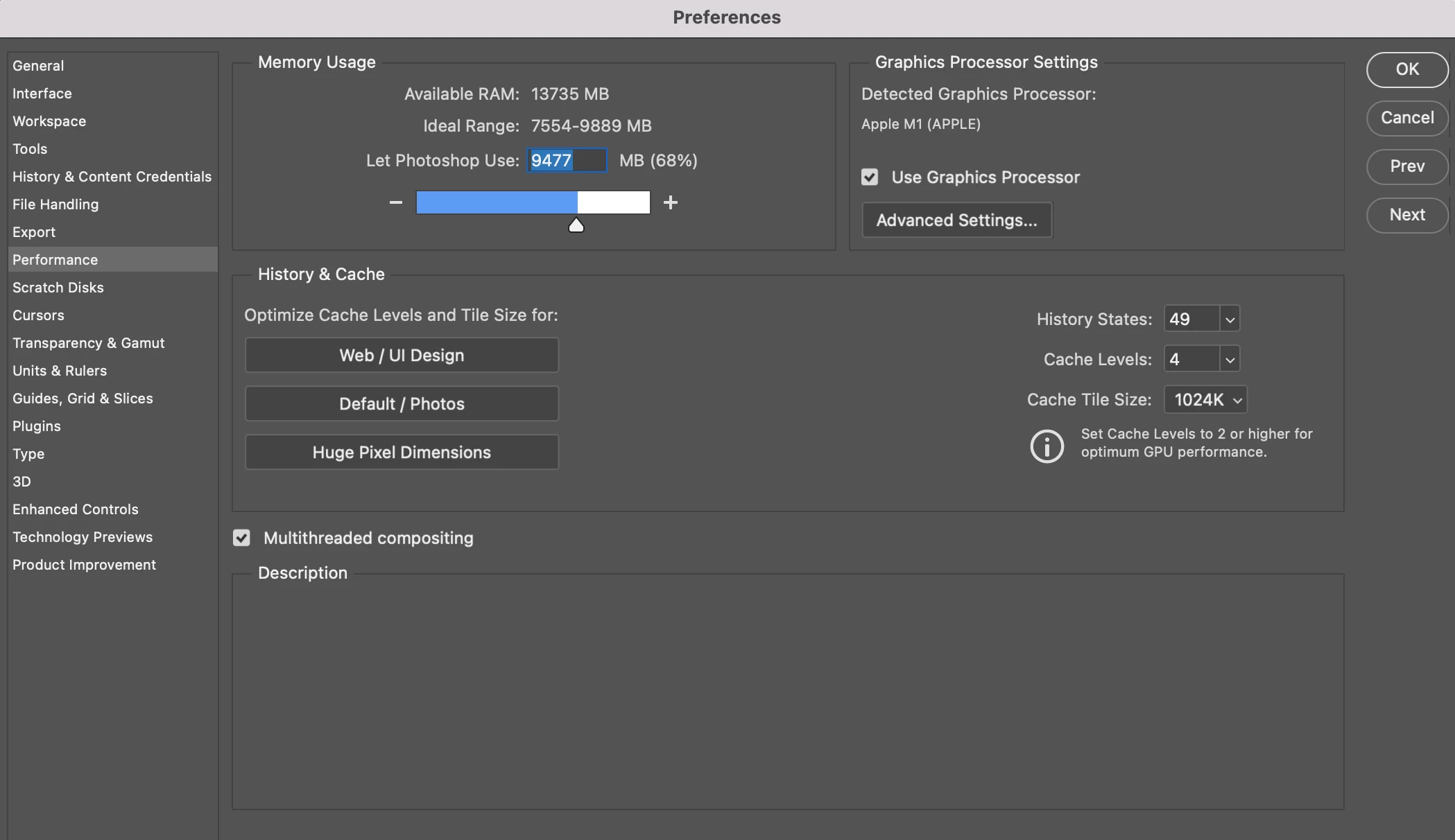 I am working on large documents 15,000x15000 (643M), one at a time.