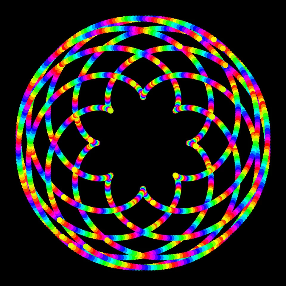 You can also create other scripts. The main thing is just to have a loop that repeats some pattern. For example, I just made a script that makes a dot, but varied the color of that dot and moved placed it differently with a mathematical formula.