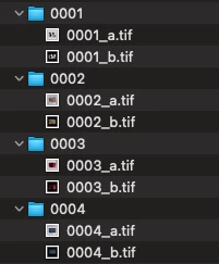 Example: File-01.jpg File-02.jpg etc, FileA1.tif FileA2.tif etc, File1a.tif File1b.tif etc.