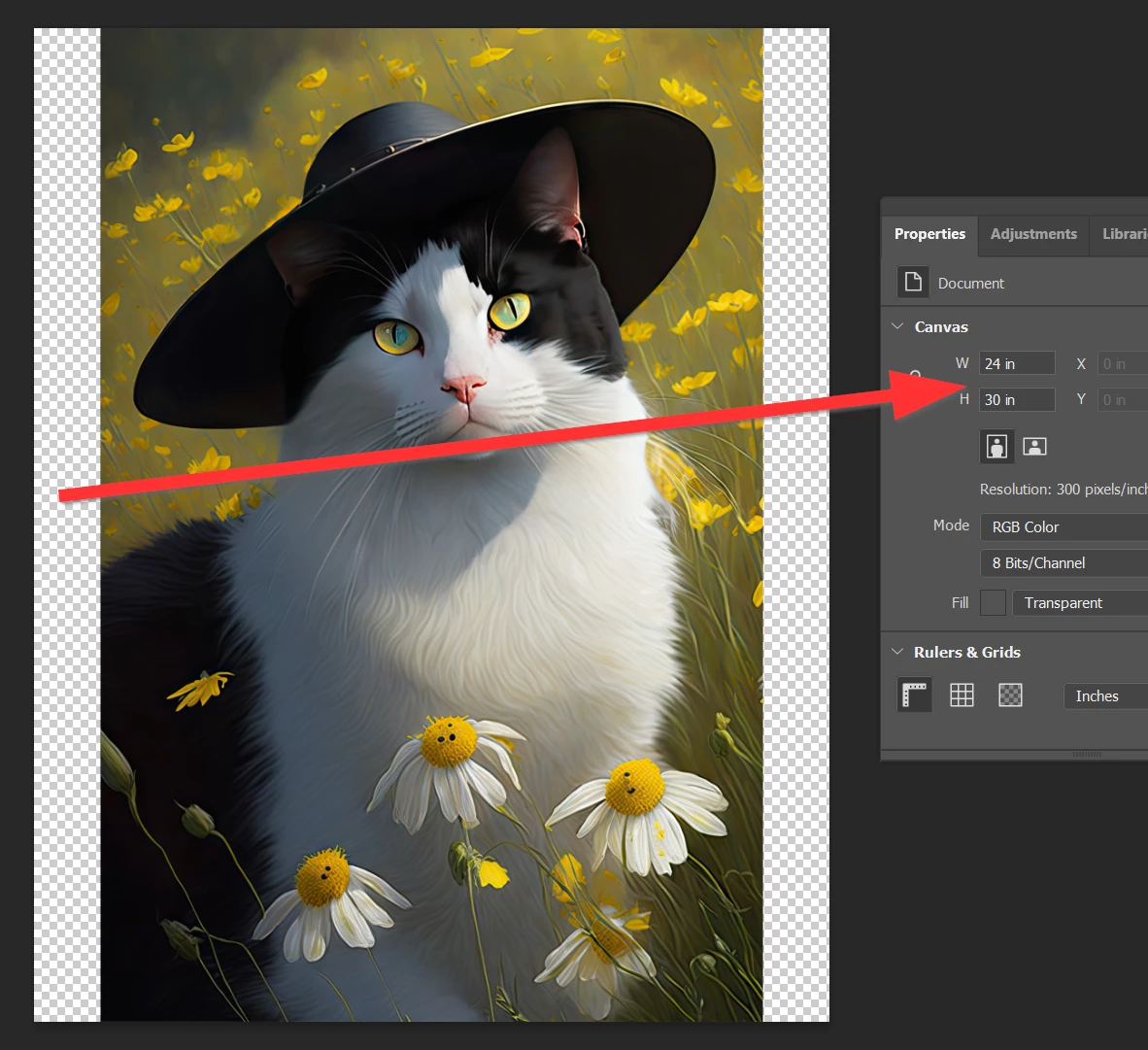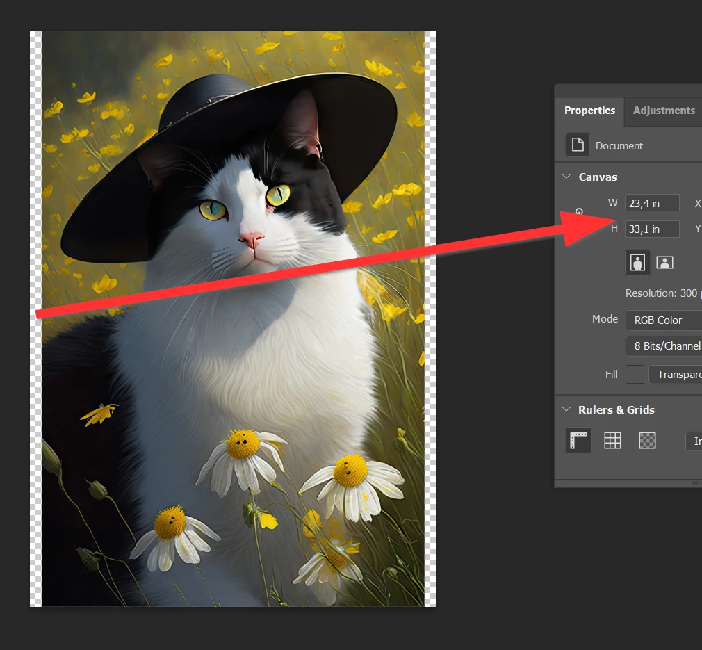 - Make the necessary action when the picture does not fit on the canvas (resize, shrink, crop, enlarge)