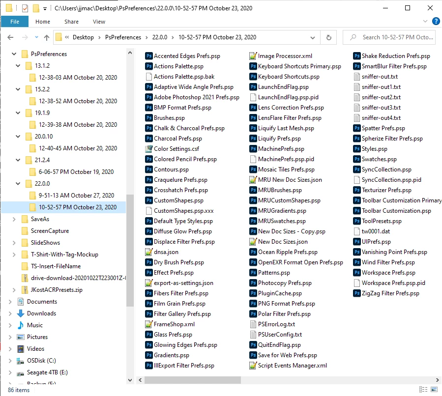 If you run Windows  I posted a script that you can use to backup dated version of your photoshop versions preferences.  The script save these version in a folder on your desktop named "PsPreferences". The script is for windows only the last time I used a mac was around 25 years ago an expensive G5 with Apple OS7 or OS9 I believe.  That was an Apple OS before Steve abandoned Apples OS and switch to a Unix type OS. I do not know Photoshop layout in Apples file system or remember Unix commands from my use of IBM's AIX Unix system.