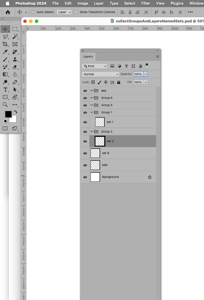 It collects two Arrays, one of all the Layers with a name like »group x« and one of the layers with a name like »set x«.