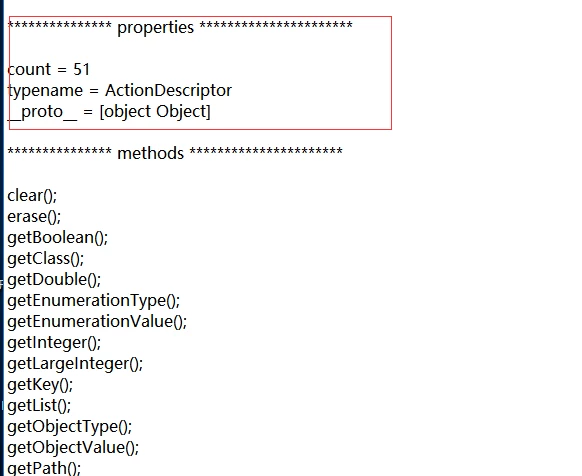 $.writeln(props[i].name + ' = ' + obj[props[i].name]);
