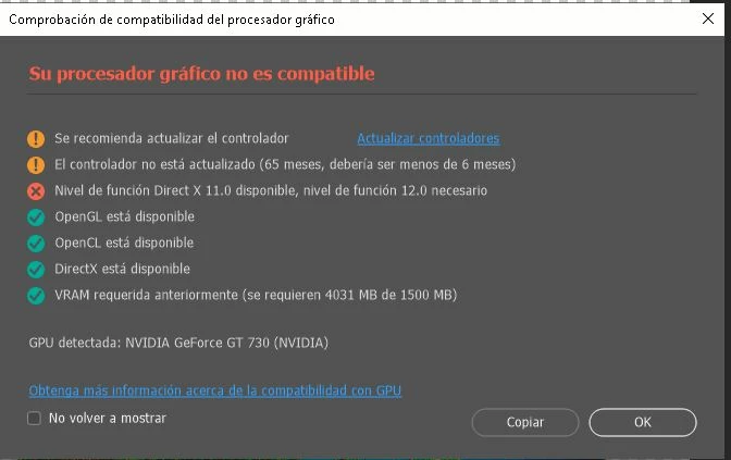 Buen día, estoy usando el photoshop beta que incluye la IA, pero tengo problemas al querer agregar un texto, pues se me cierra el programa insesperadamente y no me deja ningun mensaje de error, simplemente se cierra. Al iniciar photoshop me aparece el siguiente cuadro...