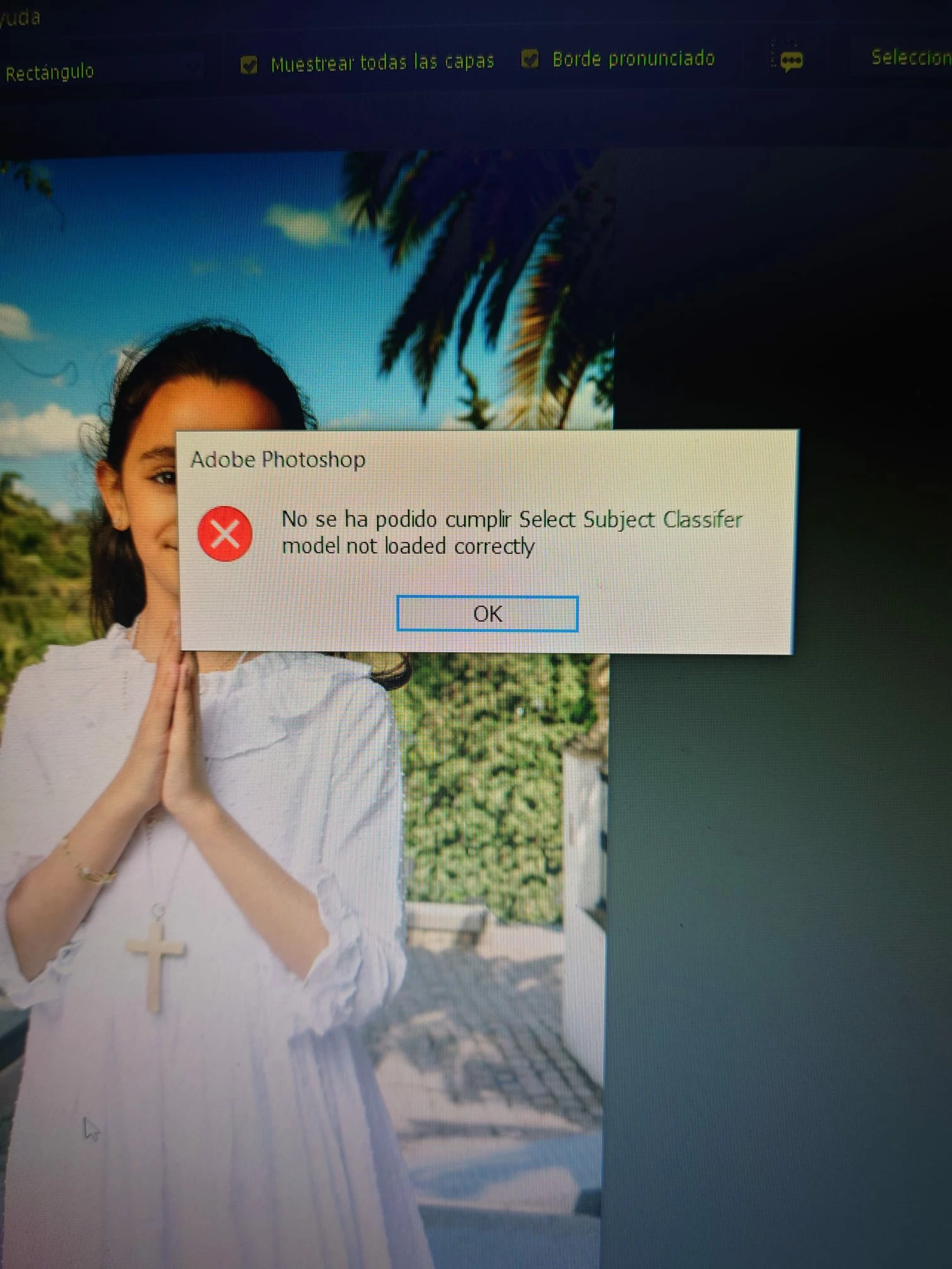hola, necesito ayuda. No puedo hacer seleccion de sujeto, con ninguna de las herramientas de seleccion, me sale un mensaje que dice ´´NO SE HA PODIDO CUMPLIR, SELECT SUBJECT CLASSIFIER, MODEL NOT LOADED CORRECTLY´´. He desinstalado photoshop y he vuelto a instalar , me sigue dando error. Hay alguna solución? gracias