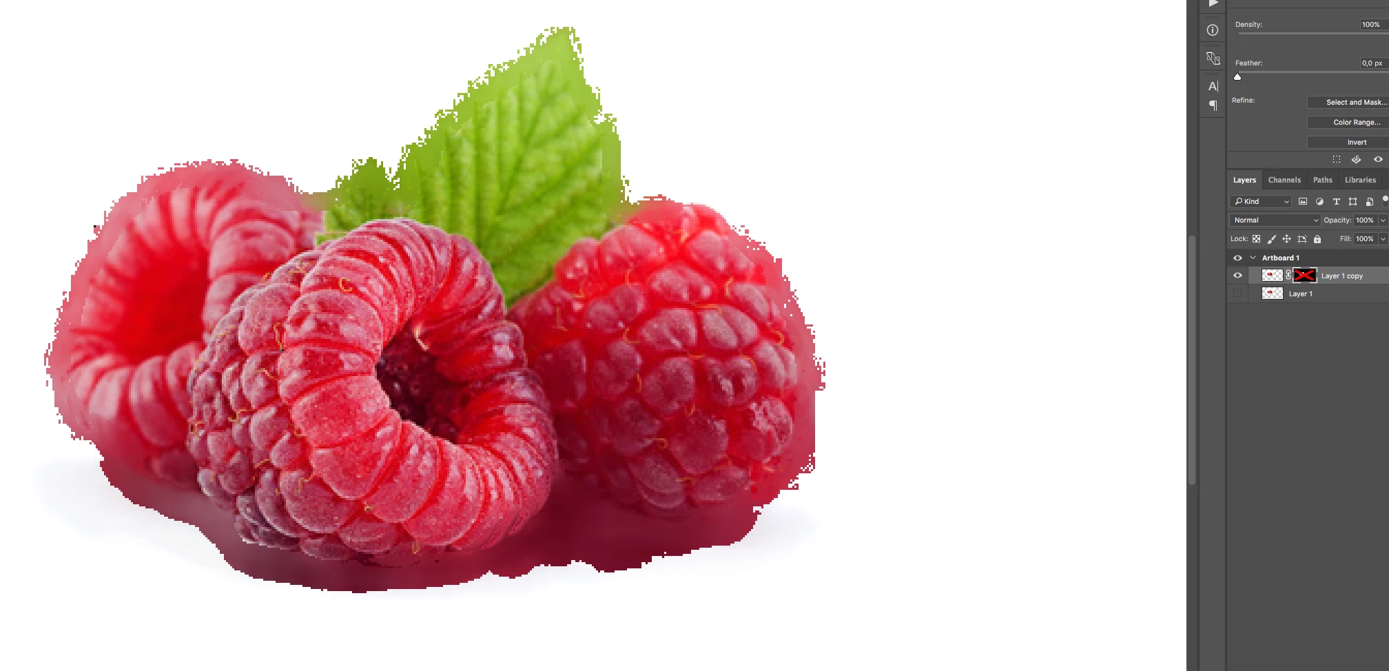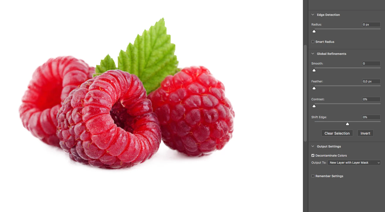 Simply I select image white background by magic wand tool, Select and Mask tool with refined edges. I used to use selection Decontaminate colors.