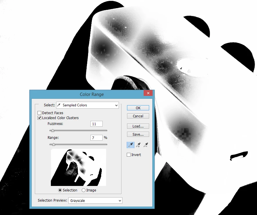 I am trying to use Photoshop cs6 to remove the green background using Select, Color Range. This however is not working for me because the color range tool is selecting the white box. I don't understand why this is happening. I'm using "Sampled Colors" and simply selecting the green. I've attached a screenshot.