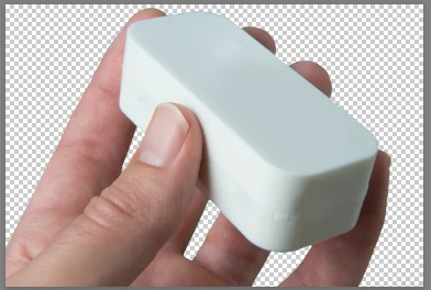 I have photographed an image with a hand holding a small white box against a greenscreen background. I hope to replace this background with something different.