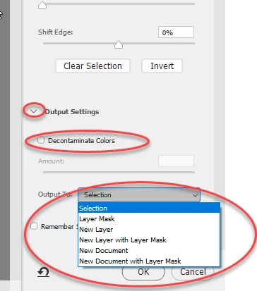 I choose Select Subject and Photoshop selects the object but when I click Select and Mask to refine the selection Photoshop automatically creates a Layer Mask on the Background layer without letting me edit the image i.e. using decontaminate colours etc. What can I do please?