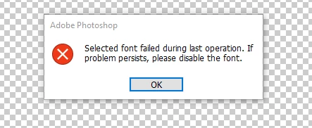 Selected font failed during last operation. If the problem persists, please disable the font.