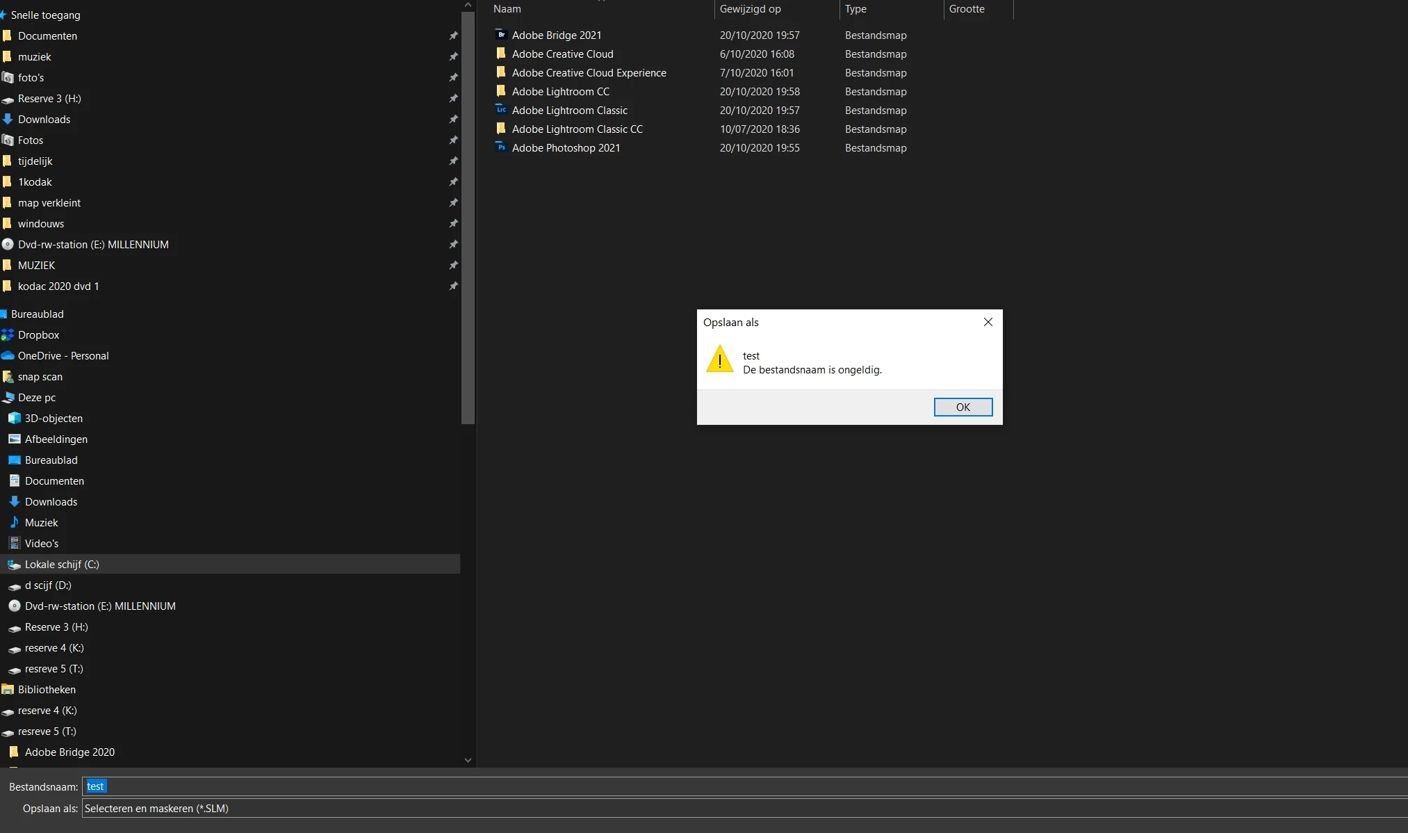 kan een selecteren en masker SLM bestand   niet opislaan potoshop 2021 in win 10 wat doe ik verkeert