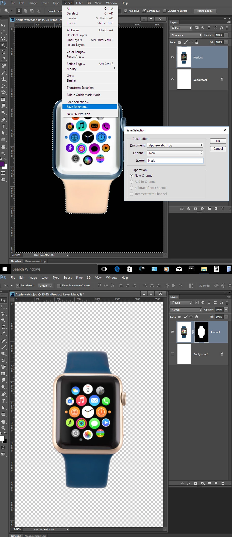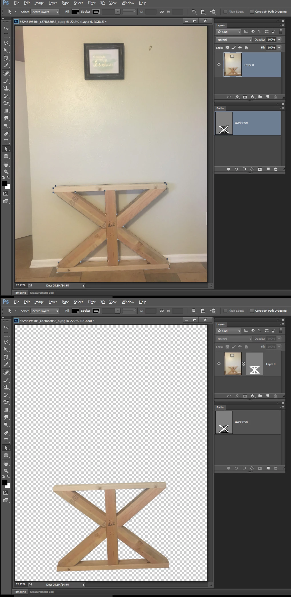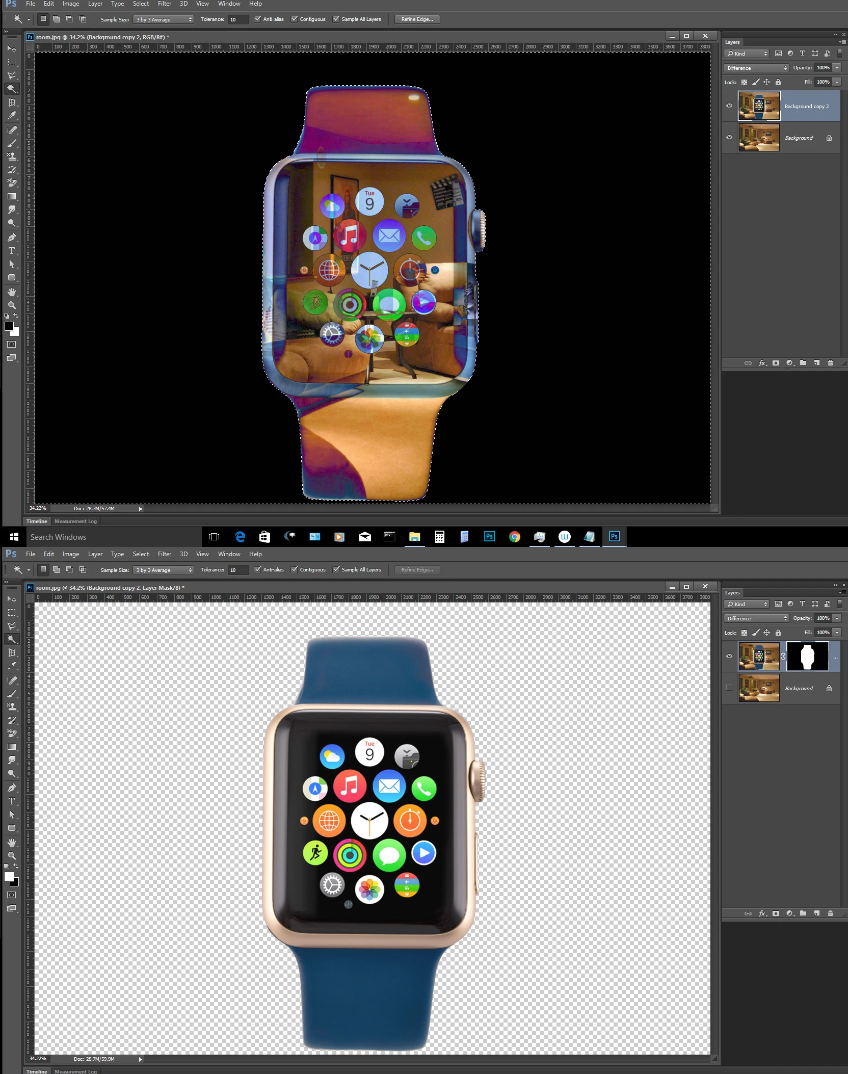 I am using photoshop CC and have two images taken on a tripod. One image is a background and the other is the same with an object in it.