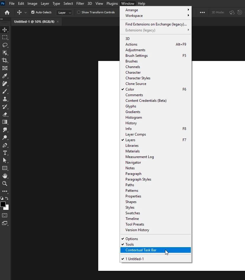 This function should, like any photoshop tab, have the option to right click, reveal an option to close it, or get a pop up menu. I don't find it user friendly at all.