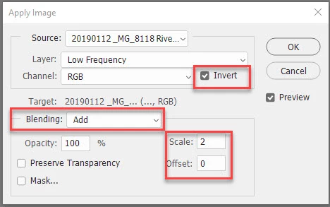 I downloaded Photoshop 2020 and when trying to use the frequency separation for skin treatment, I identified that there are no more scale and displacement checkboxes in the Edit-Apply image menu.