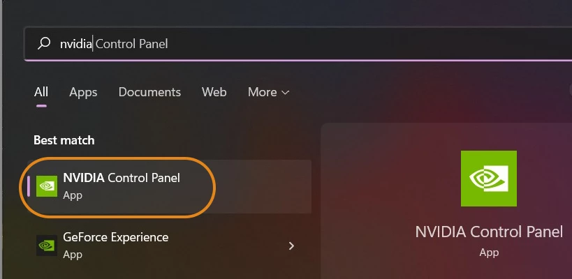❶ Use Windows Search and search for the NVIDIA control panel.