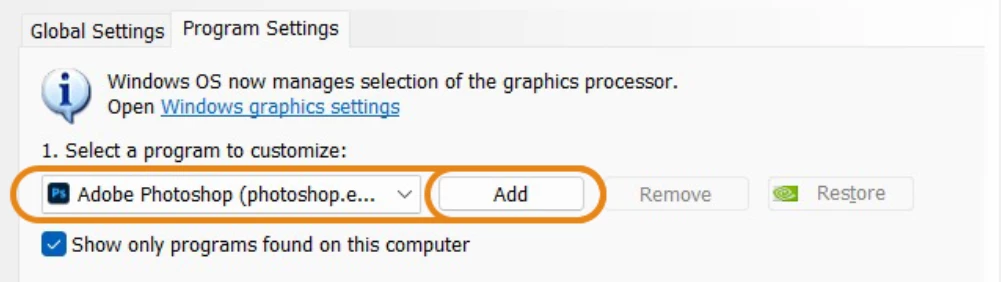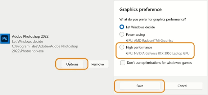 Quick steps to set up the high-performance GPU for Photoshop