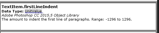 alert("textItemRef.firstLineIndent=" + textItemRef.firstLineIndent);