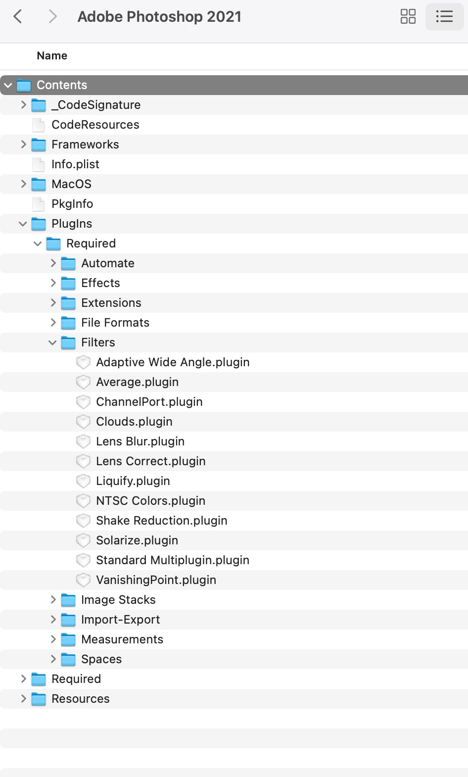 The shake reduction filter doesn't appear under sharpen (or any other sections) of the filter menu. I've looked in Plugins and nothing to be seen there. I've checked that it is installed on the computer (new M1 iMac with latest OSX 11.5.2) and that's fine as per screen shot.